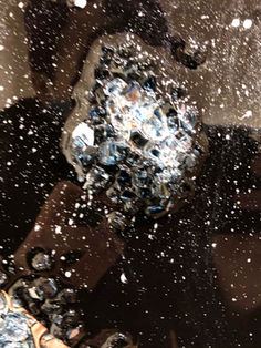 Inspired by the mystical idea that upon creation, the physical vessel containing the holy primordial light of G-d shattered into countless scattered sparks and pieces, as numerous as the stars in the sky. Our job is to transform the darkness by revealing the hidden sparks.
