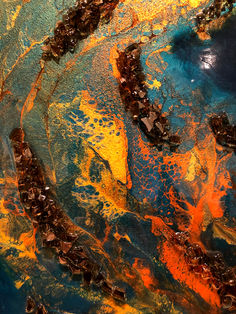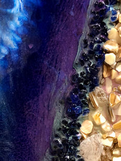 This abstract painting is inspired by the sand on the shoreline. It is made of crushed sea shells, resin, and mica powder.
