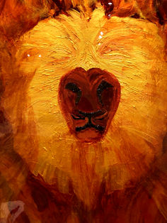 This painting imagines the lion shaped fire that G-d sends to consume the carbon (sacrifices) brought to the Beis Hamikdash (Holy Temple).